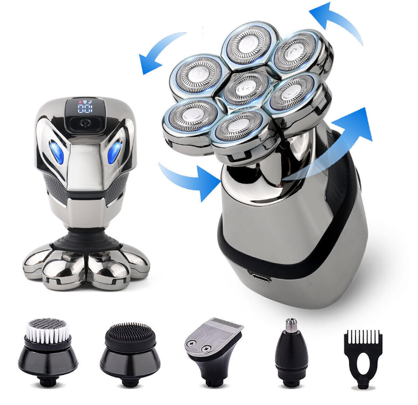7D Cordless Shaver Hair Trimmer Men’s 5-In-1 Electric Head Shaver Razor Men Wet