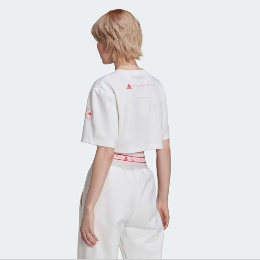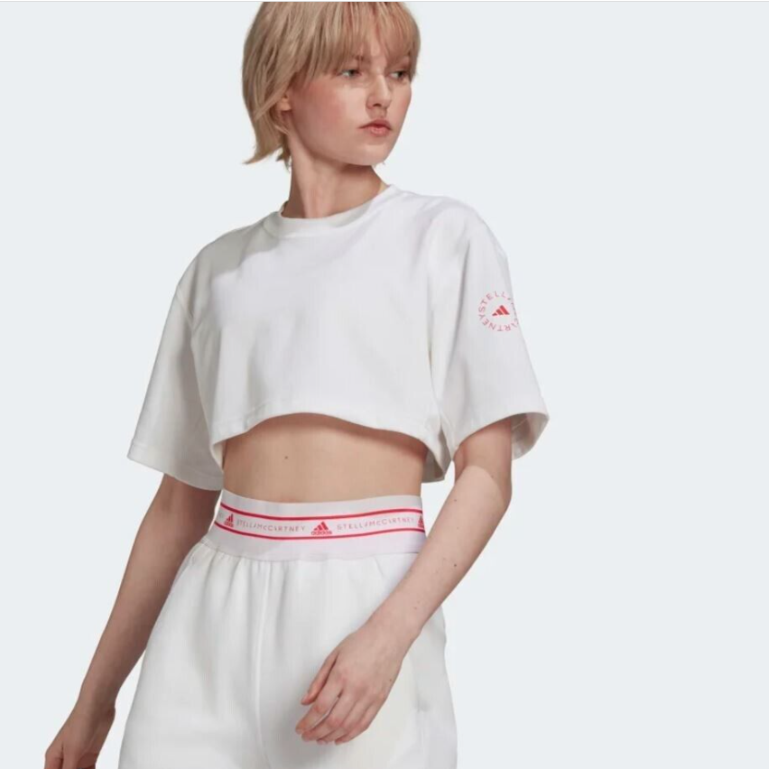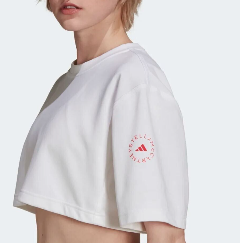 Let's get right to the point: there is no wrong place, or way, to wear this adidas by Stella McCartney cropped top. It goes with everything and goes everywhere. It's all about how you style it, and with the simple, sophisticated build, the options are endless. The loose shape hangs elegantly, with slightly elongated sleeves adding casual sophistication. This product is made with organic cotton and recycled content as part of our ambition to end plastic waste.