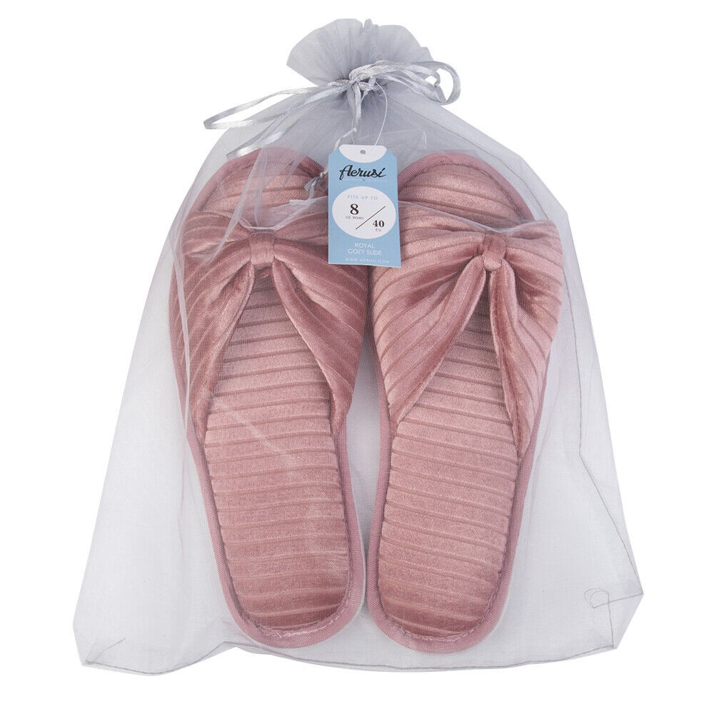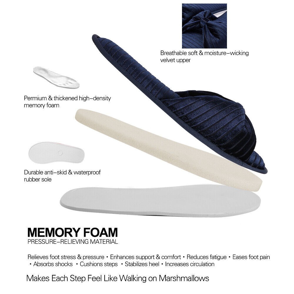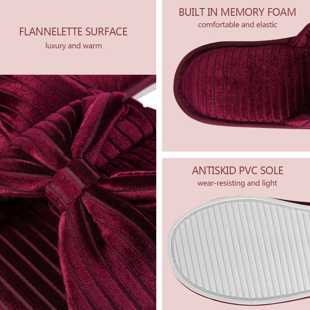 Aerusi Women Bow Open Toe Slide Memory Foam Velvet Slippers Non-Slip House Shoes