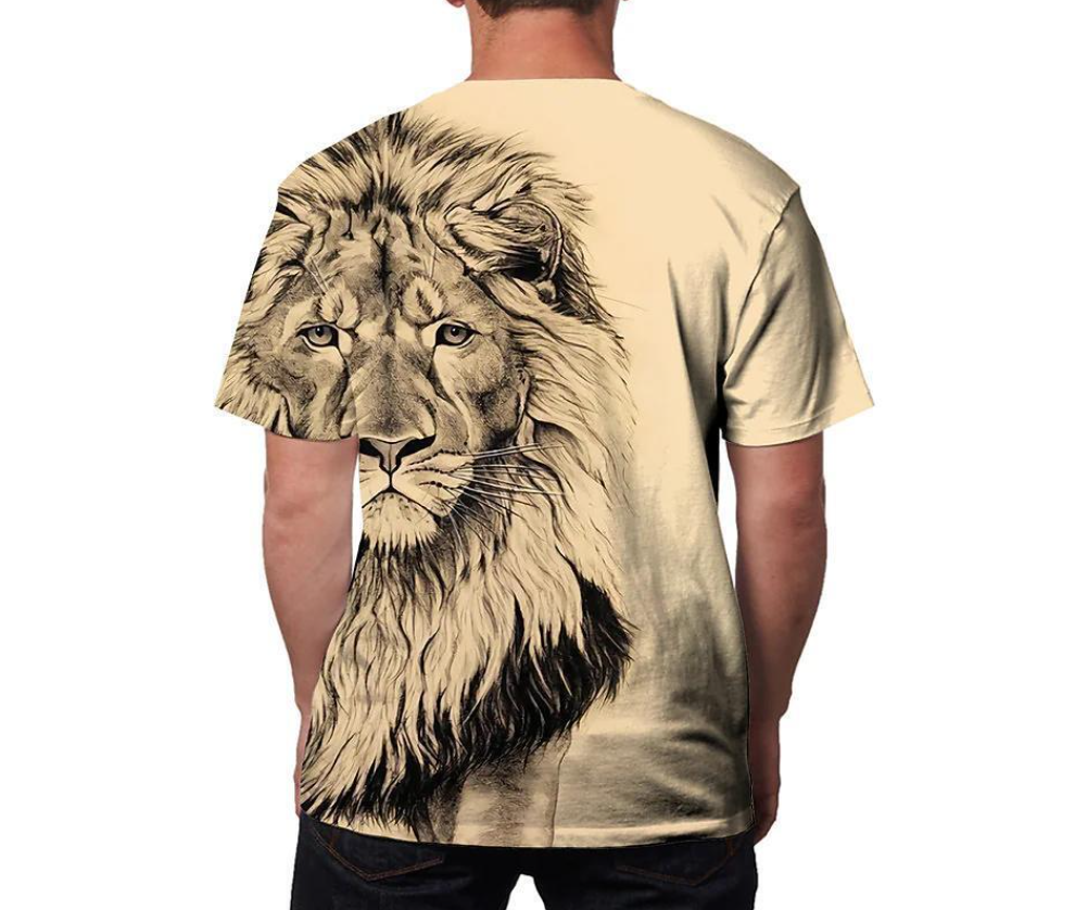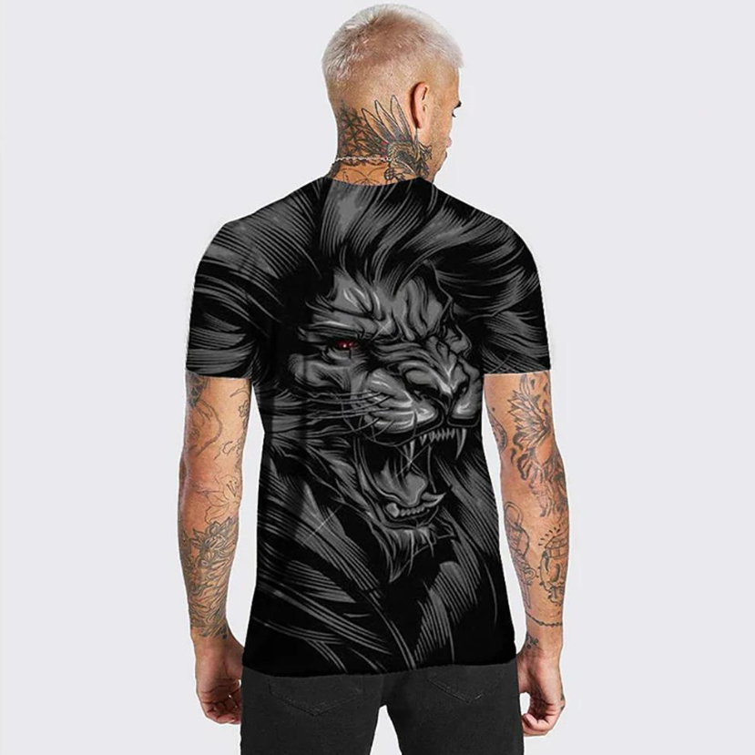 • Captivating 3D printed design: This men's t-shirt features a captivating and lifelike 3D printed image of an animal lion, adding a unique and bold statement to your summer wardrobe.