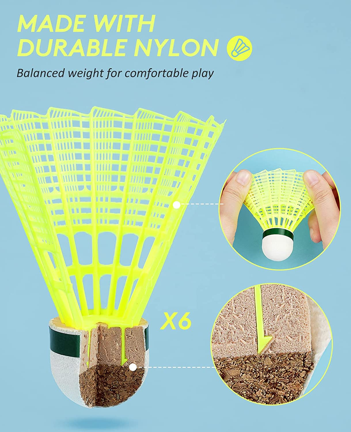 Badminton Rackets Set of 6 for Outdoor Backyard Games, Including 6 Rackets, 6 Ny