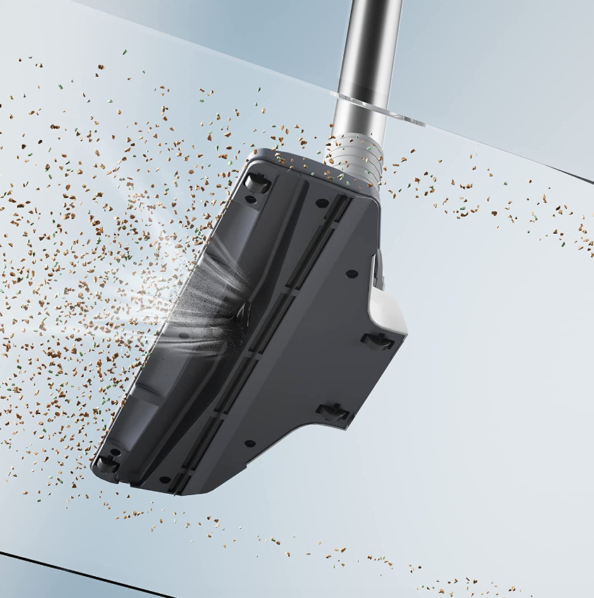The flexible floor brush head easily cleans every corner and those hard-to-reach places like sofas and under beds.