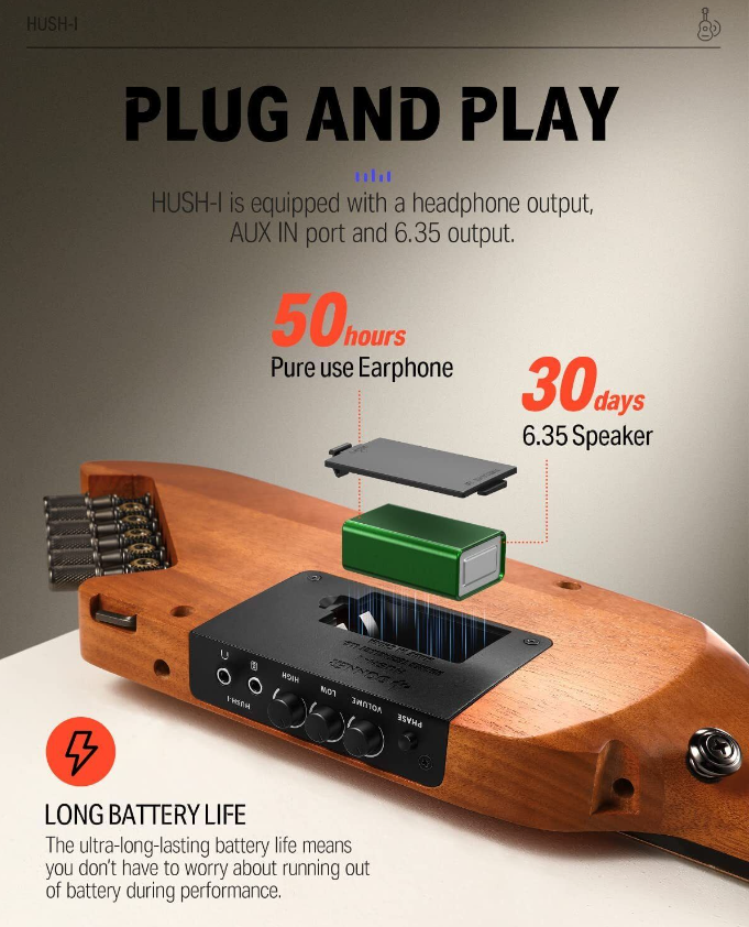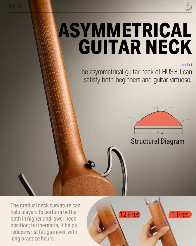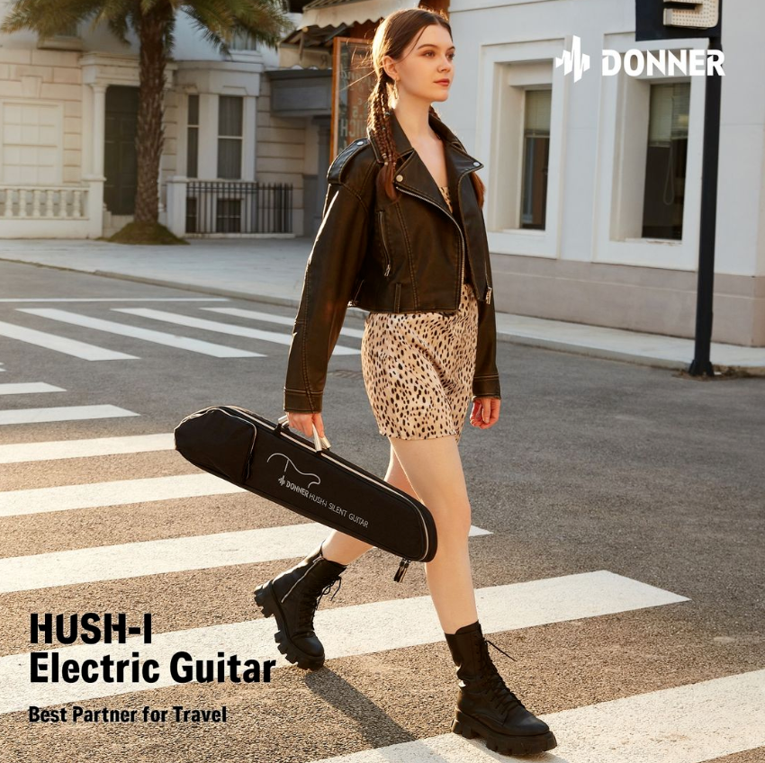 Donner HUSH Acoustic Electric Travel Guitar Headless Silent Pratice | Refurb