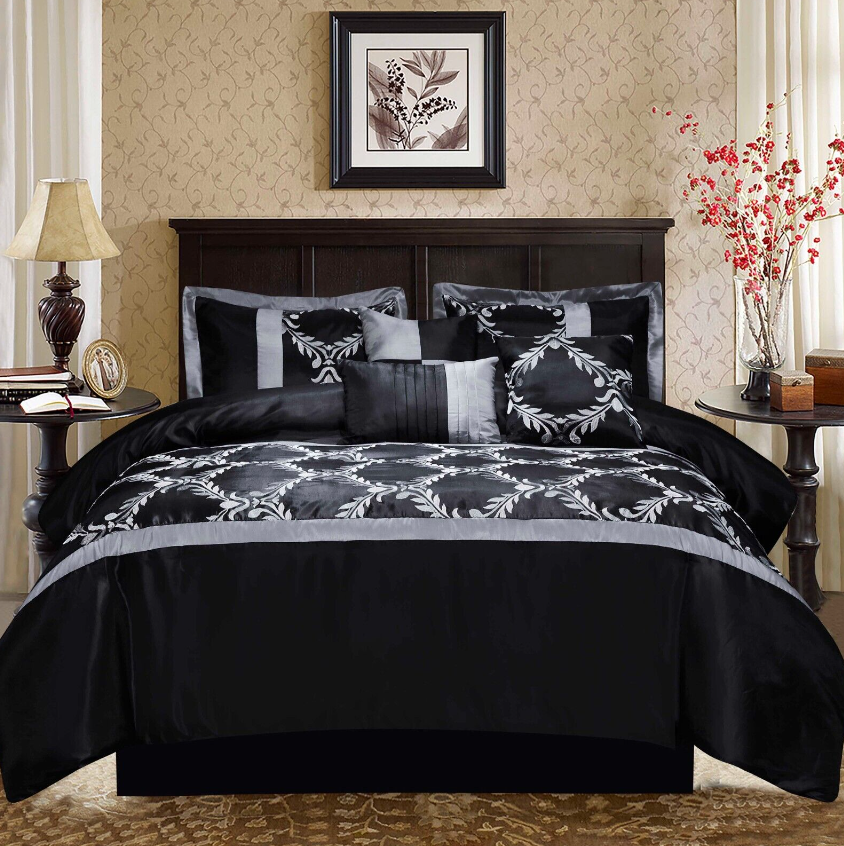 HIG 7PC Comforter Set Bed in a Bag Taffeta Fabric Embroidered Bed for Room Decor