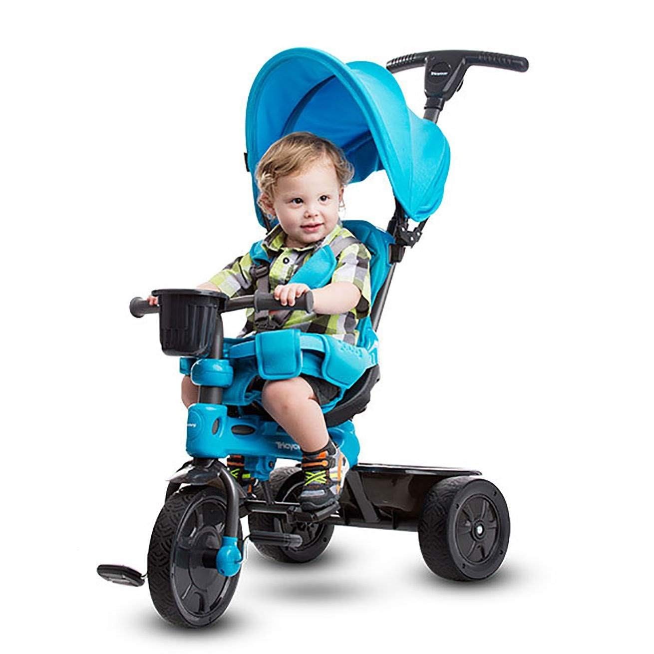 Joovy Tricycoo 4.1 Kids Tricycle with 4-Stages Featuring Extra-Wide Front Tire, Removable and Adjustable Parent Handle, Safety Harness, Machine-Washable Seat Pad, and Retractable Canopy (Black)