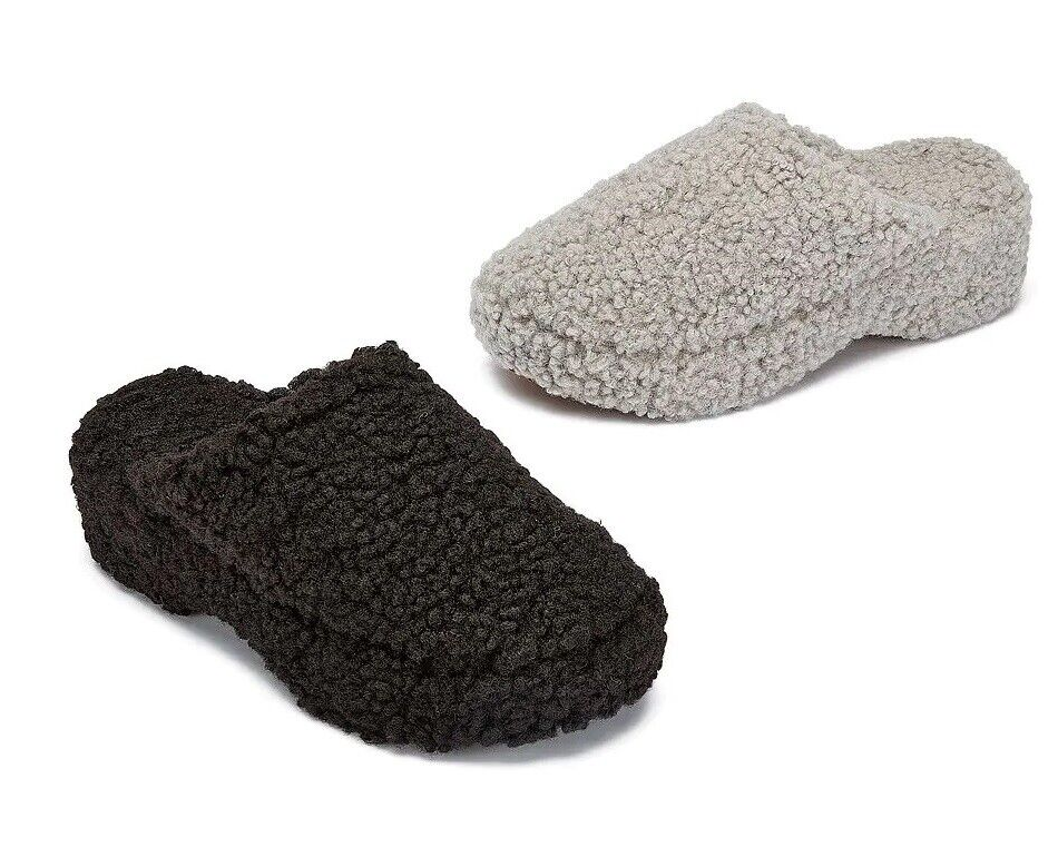 Ladies Womens Wedge Slip On Hard Sole Mule Slippers Sheepskin Platform Sandal Sz