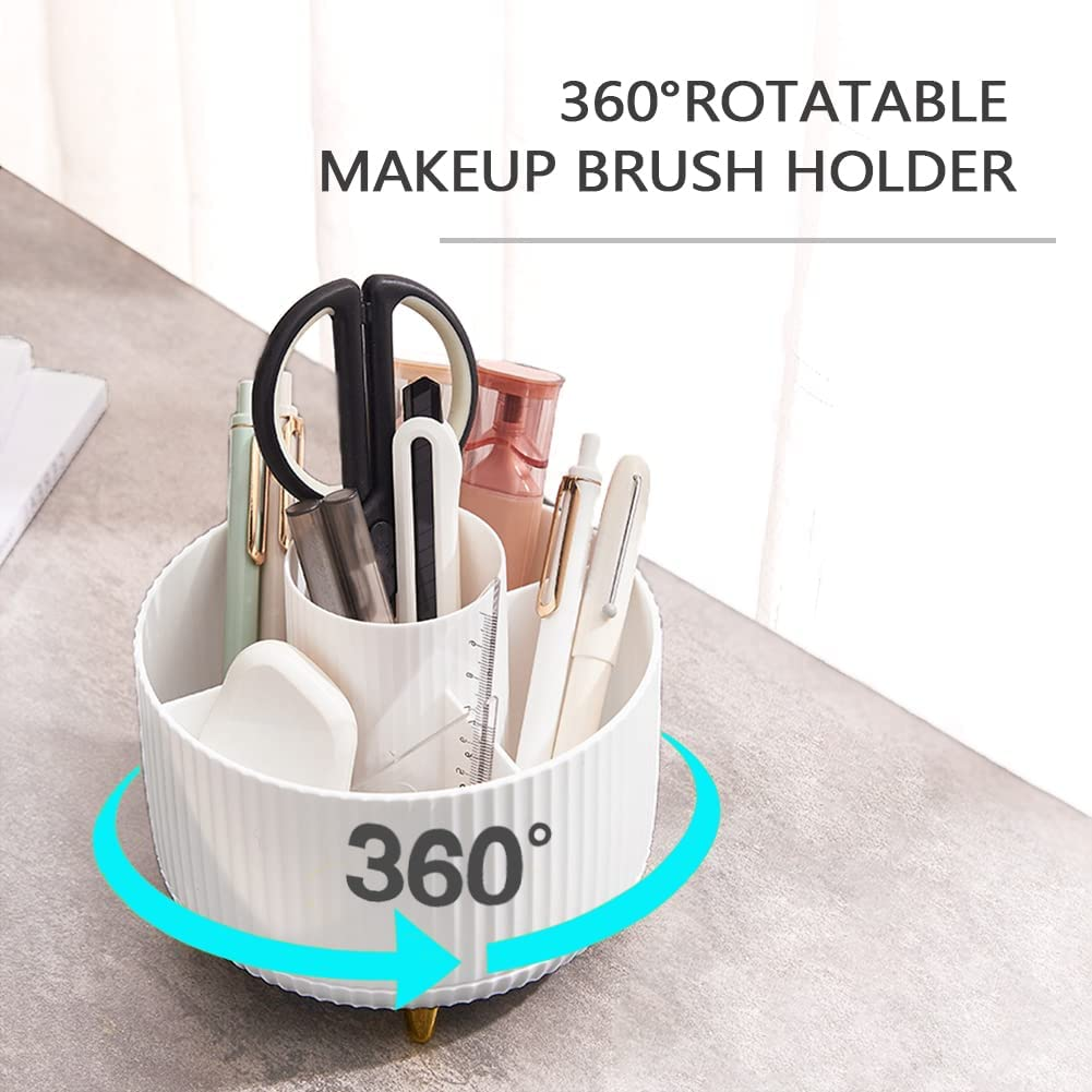 Makeup Organizer, 360 Rotating Makeup Brush Holder, 5 Slot Large Capacity Makeup