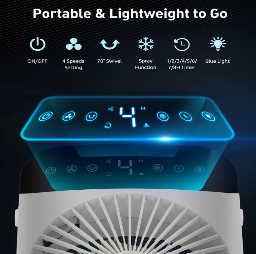 ❄Unlike the traditional air conditioner cooling the temperature with chemicals, an AITREE 10in rechargeable small evaporative air cooler is a new kind of cooler that utilizes water and turns it into mists to cool your down, That it's environmentally friendly and energy-saving. Created with a simple user-friendly design, This 4-in-1 Portable air conditioner fan is designed to create a joyful & convenient summertime for you, starts to work at the press of a single button!