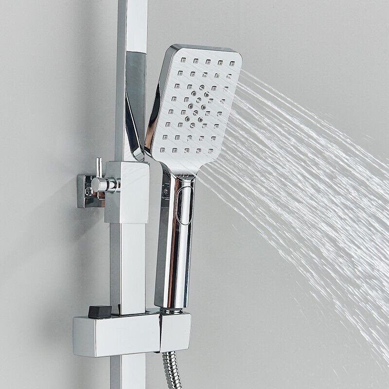 Modern Thermostatic Exposed Bathroom Shower Twin Head Bar Set Mixer Square Valve