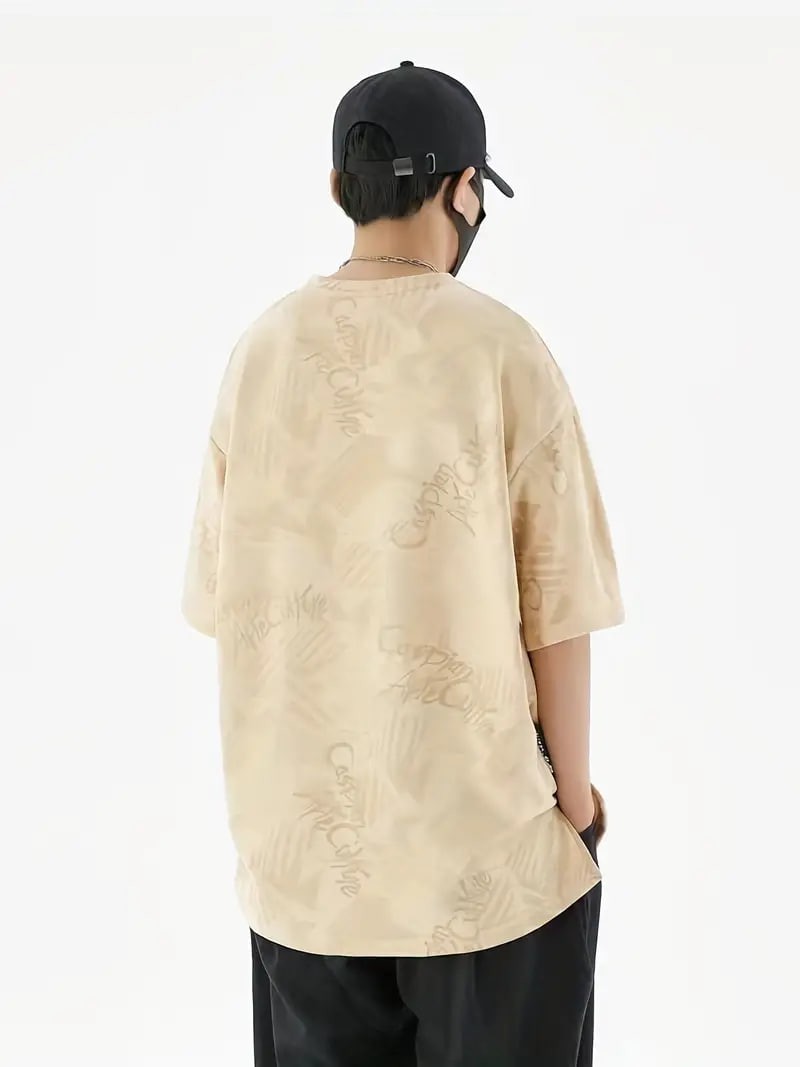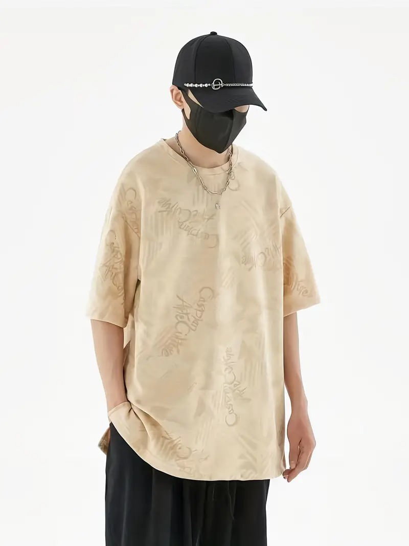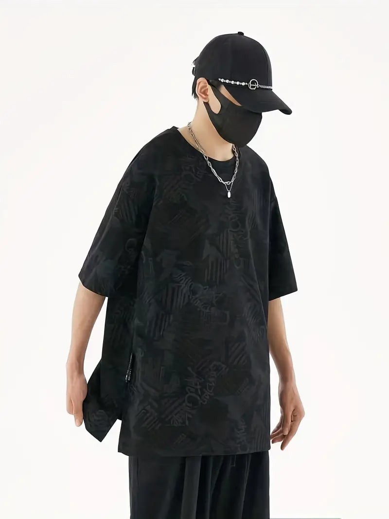 Plus Size Men's Casual Streetwear Tops Solid Textured Fashion Loose Drop Shoulder T-shirts
