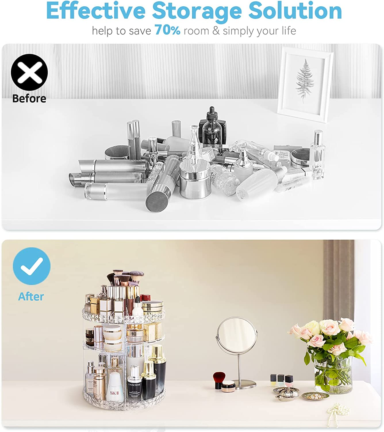 Rotating Makeup Organizer Spinning Makeup Organizer for Vanity, 360 Rotation wit