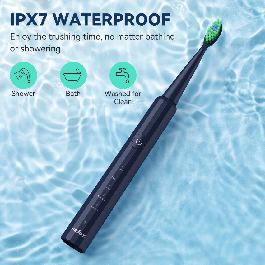 【Develop Healthy Tooth Brushing Habits】: Built-in 2 minutes smart timer to ensure scientific brushing time, the sonic electric toothbrush pauses every 30 seconds to remind you to change the brushing area. And you can rinse it easily or use it in the shower with IPX7 waterproof.