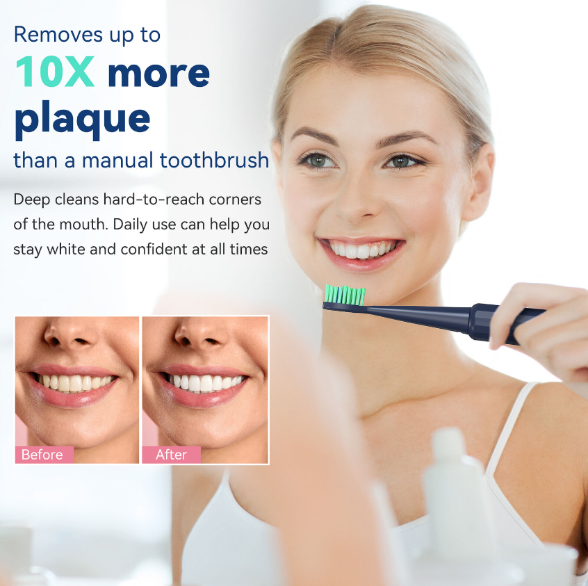 • 【Remove Up To 15X Plaque Than A Manual Toothbrush】:The Sejoy Sonic Electric Toothbrush produces 33,000 ultrasonic motions per minute to deliver fluid deep between your teeth and gum line for superior cleaning that effectively removes up to 99.99% of plaque. The cleaning effect is 10 times that of manual toothbrushes and 3 times that of ordinary electric toothbrushes. Whiten teeth and improve oral health in 2 weeks for a more attractive and confident smile.