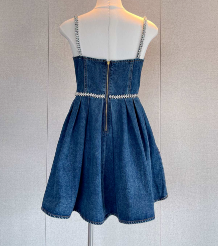 Self-Portrait Cotton Denim Slip Dress Diamante Backless Mini Dress for Women New