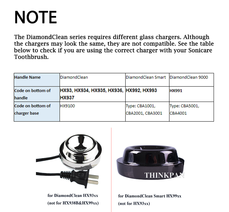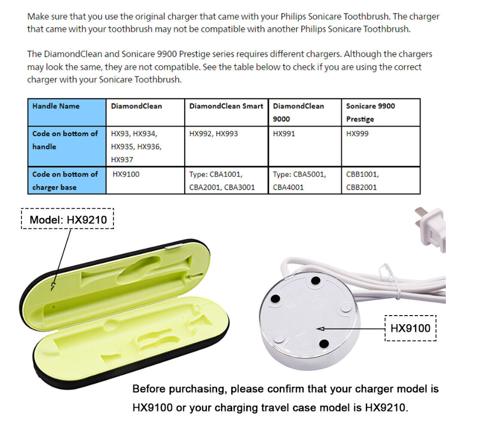 Note: Different series require different chargers. Please confirm your charger model before purchasing. If it is HX9100, please select DiamondClean Classic HX93xx; If it is CBA4001/CBA5001, please select DiamondClean 9000 HX991x; If it is CBA1001/CBA2001/CBA3001, please select DiamondClean 9300 or 9500.
