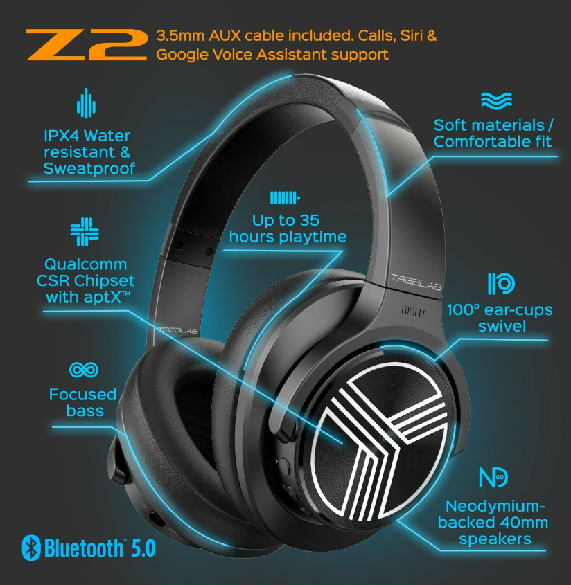 Z2 over the ear headphones come with our advanced Sound 2.0 aptX technology, delivering pure, CD-quality sound straight to your ears. They are the best headphones for travel on the airplane, for a crowded subway, a noisy office, or a distracting gym—you can expect the same level of sound quality from the Z2s.