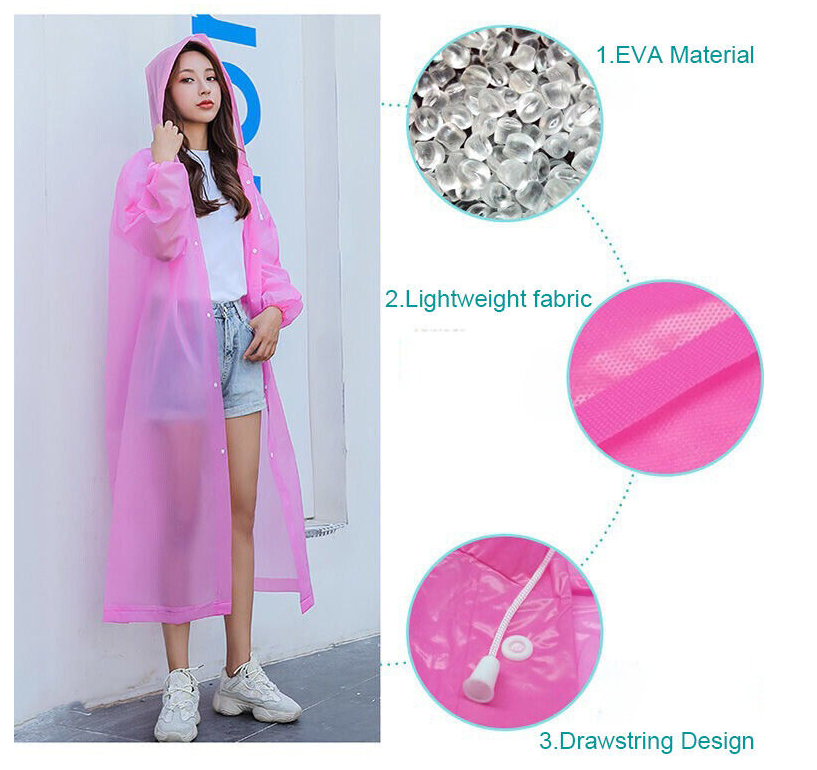 Waterproof with long sleeves and big drawstring hood design keeps you dry in rain.
