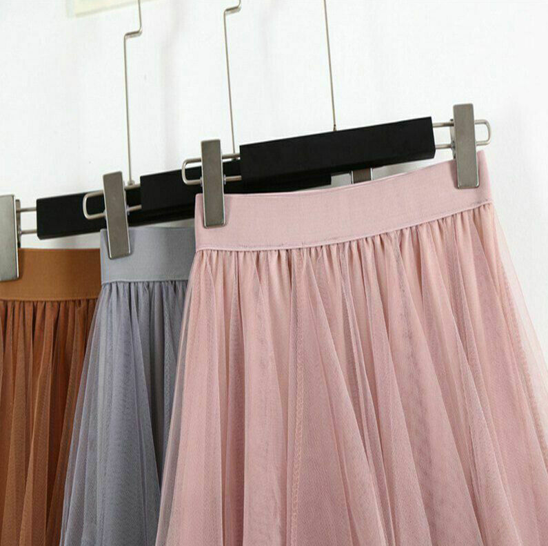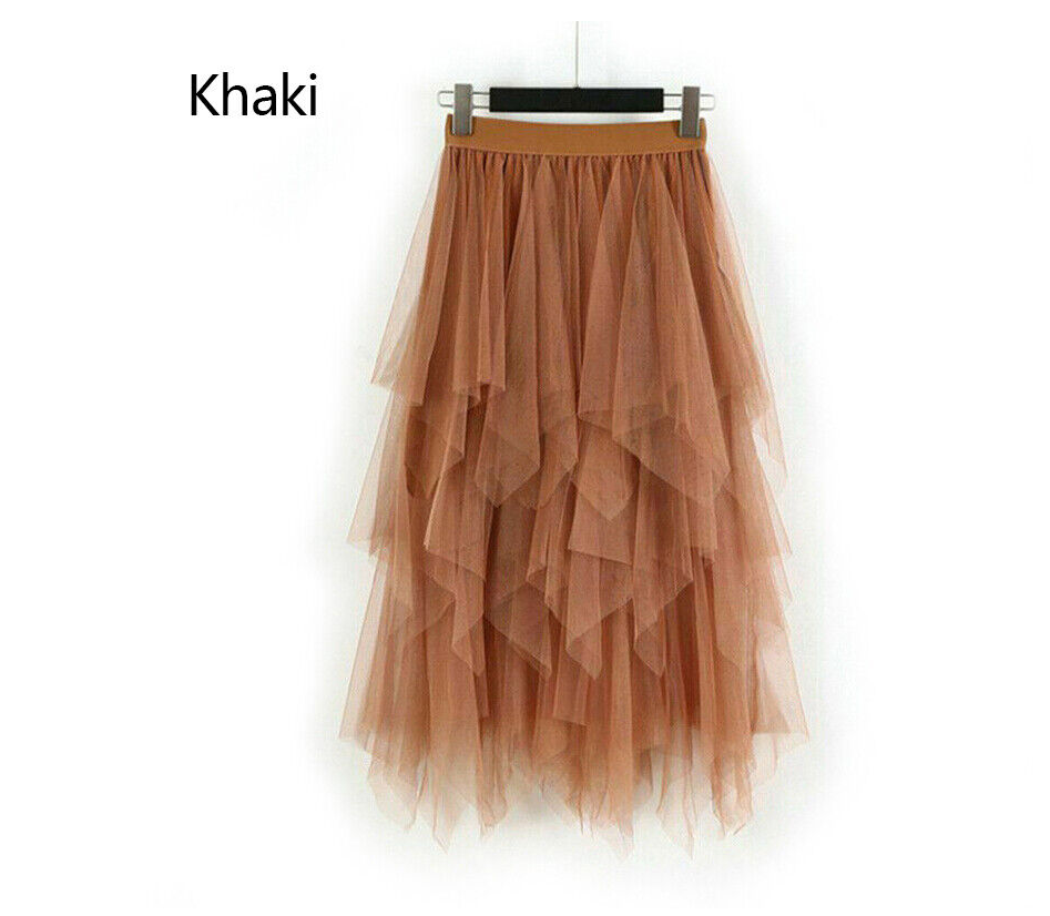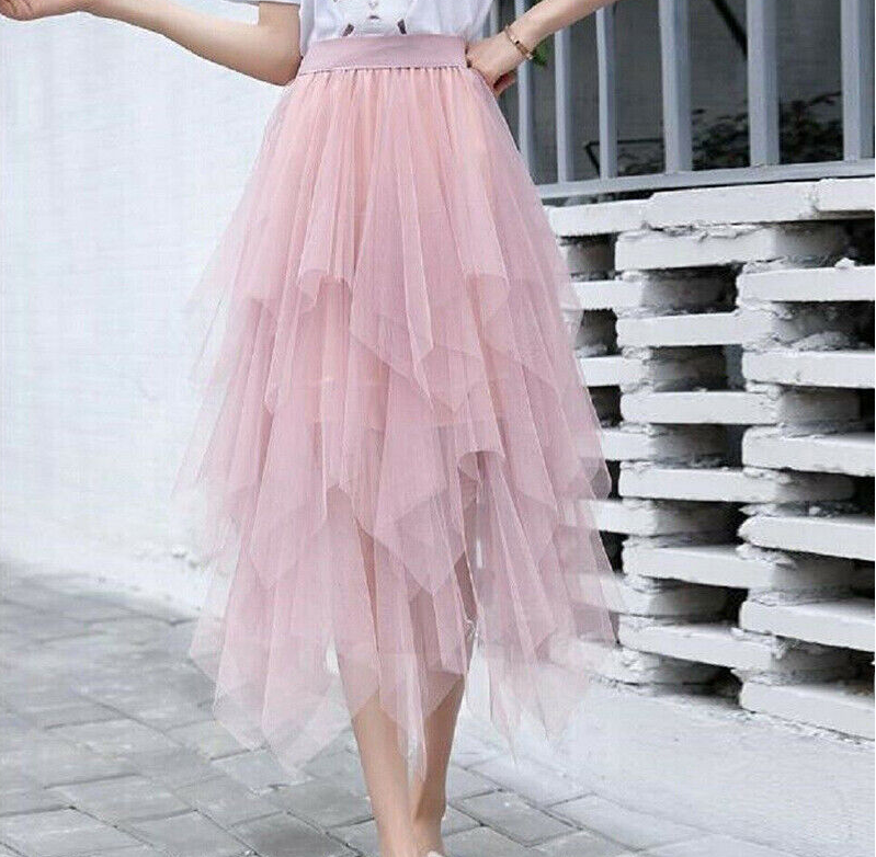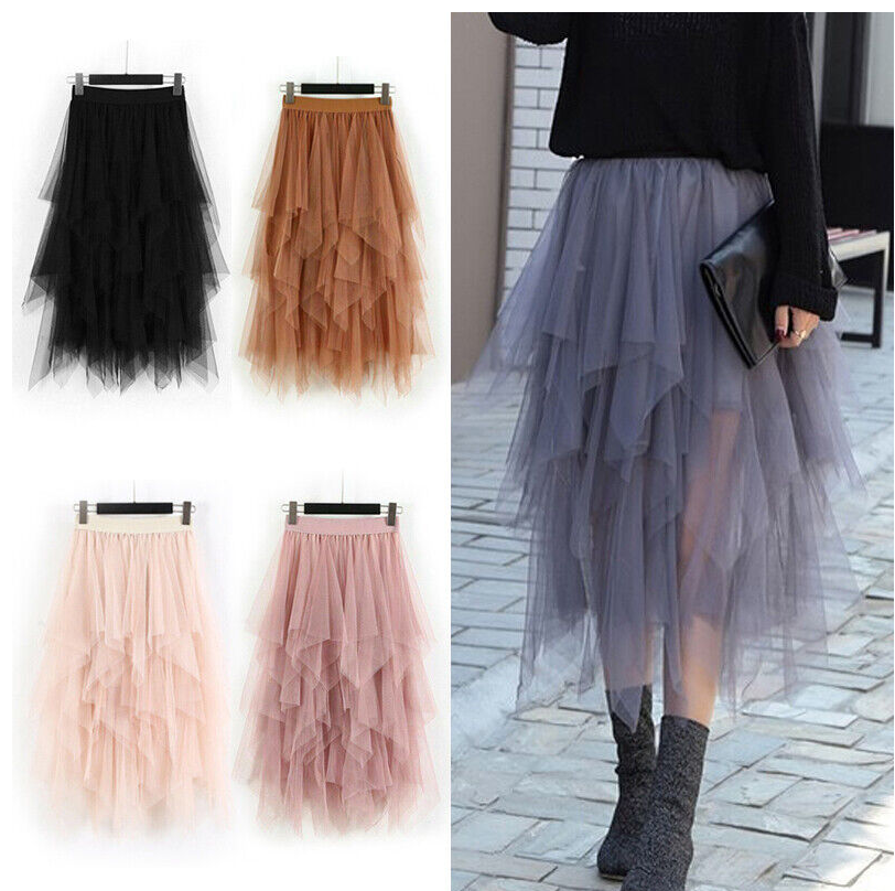 Women Elastic High Waist Tulle Mesh Skirt Ladies Layered Maxi Long Party Dress