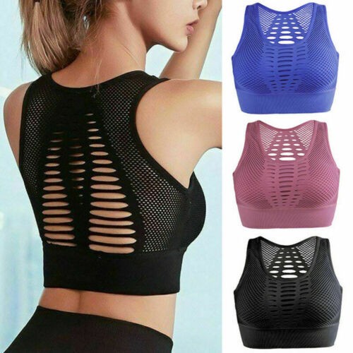 Women's Yoga Padded Sports Bra Backless Workout Seamless Racerback Gym Crop Tops